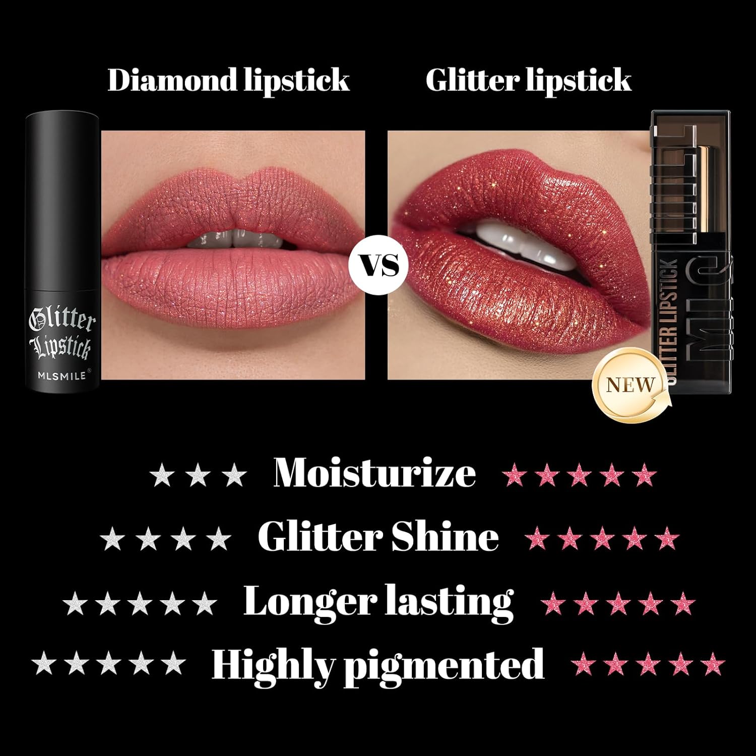 GLITTERY FINISH — Add a touch of sparkle to your look with these dazzling lipsticks that combine shine and matte textures for a chic and sophisticated appearance.