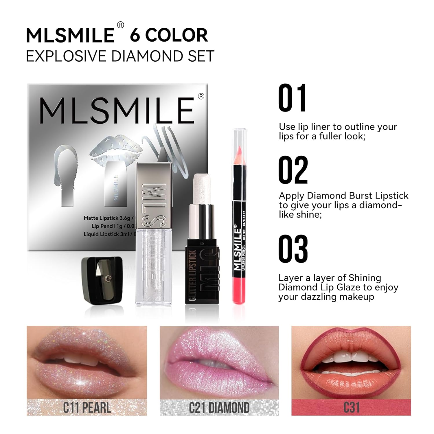 MLSMILE 3PCS Women’s Shimmering Lipstick Set comes in two sets, A and B, with six colors. 2 color lipsticks, 2 lip gloss, 2 lip liner Suitable for any occasion from casual outings to glamorous events.
