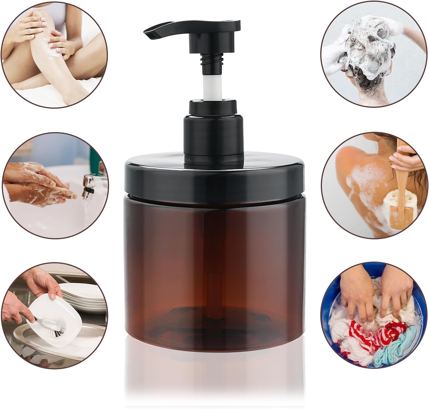 【Premium Material】Pump bottle dispenser made of PET plastic, Lightweight and sturdy material reduces your travel burden. Size:3.54*3.35inch, 500ml/16.9oz. Please kindly note that this product doesn’t work for thick liquid such as thick cream, thick lotion, etc. Please also note that the straw in the bottle needs to be cut according to your own needs. Any problems, we will do our best to meet your satisfaction.