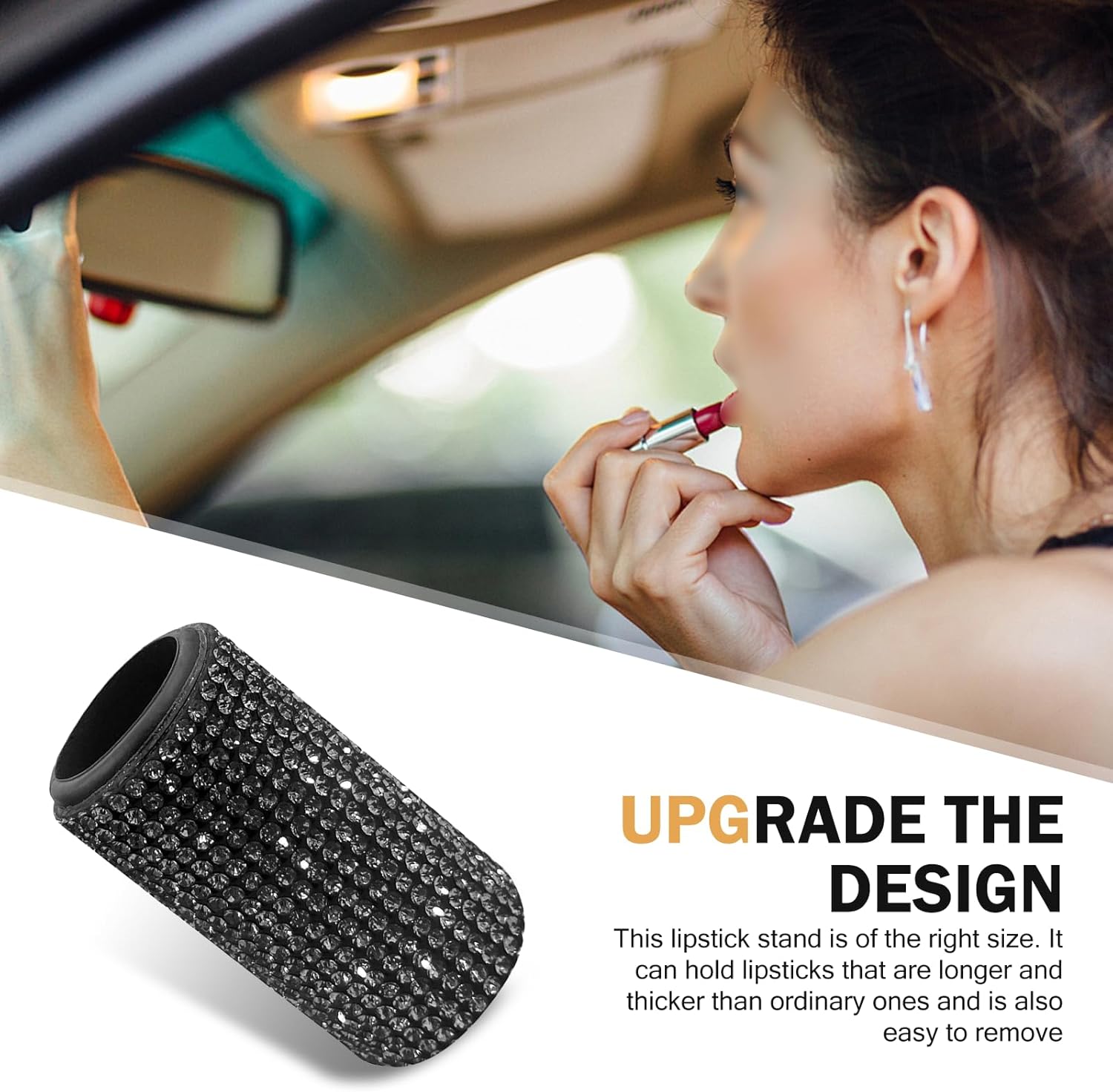 leechio 1 PC Car Chapstick Holder, Upright Bling Chapstick Holder, Self-adhesive Lipstick Holder for Car, Universal Car Accessories for Women (Black)