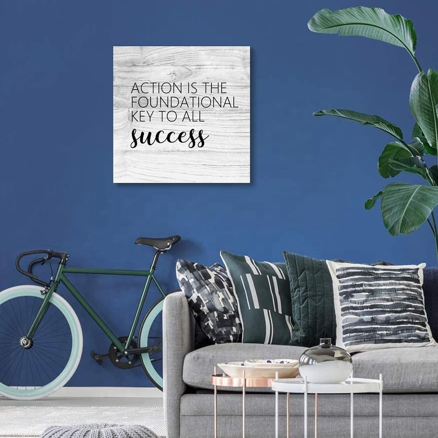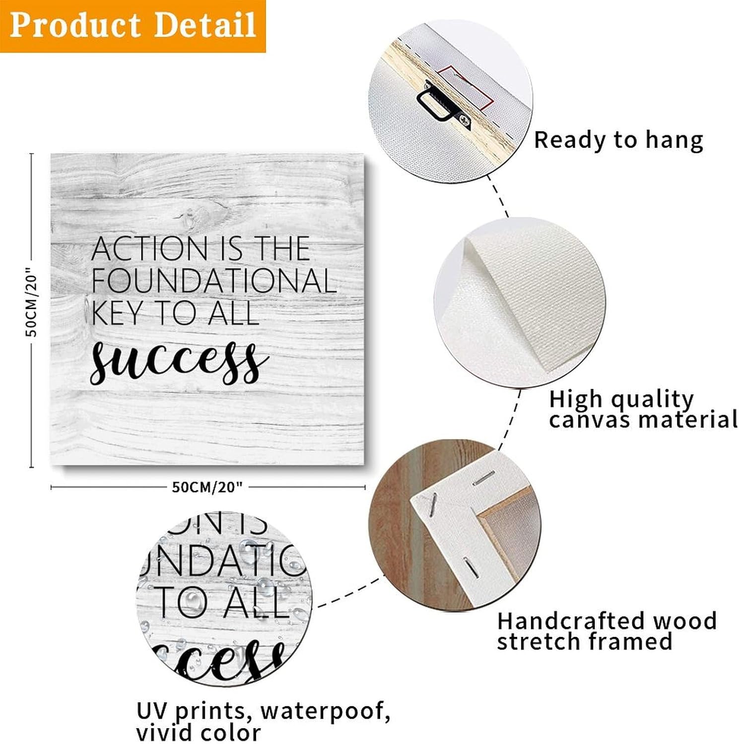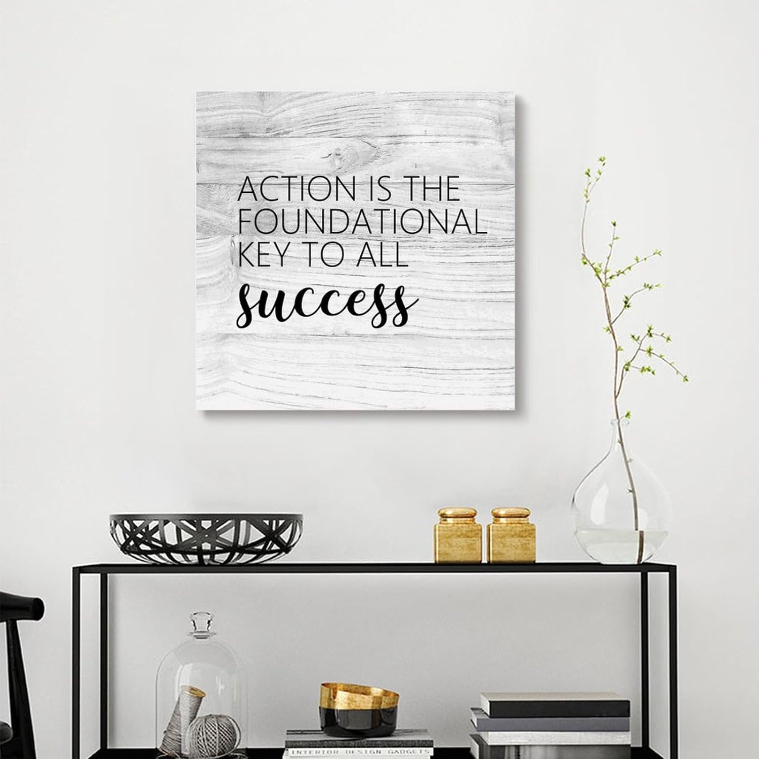 COCOKEN Action Is The Foundational Key to All Success Canvas Print Wall Art Paint, Motivational Quotes Artworks for Living Room Bedroom Porch Home Wall Decor Hanging Poster Christian Gift 20×20 Inch
