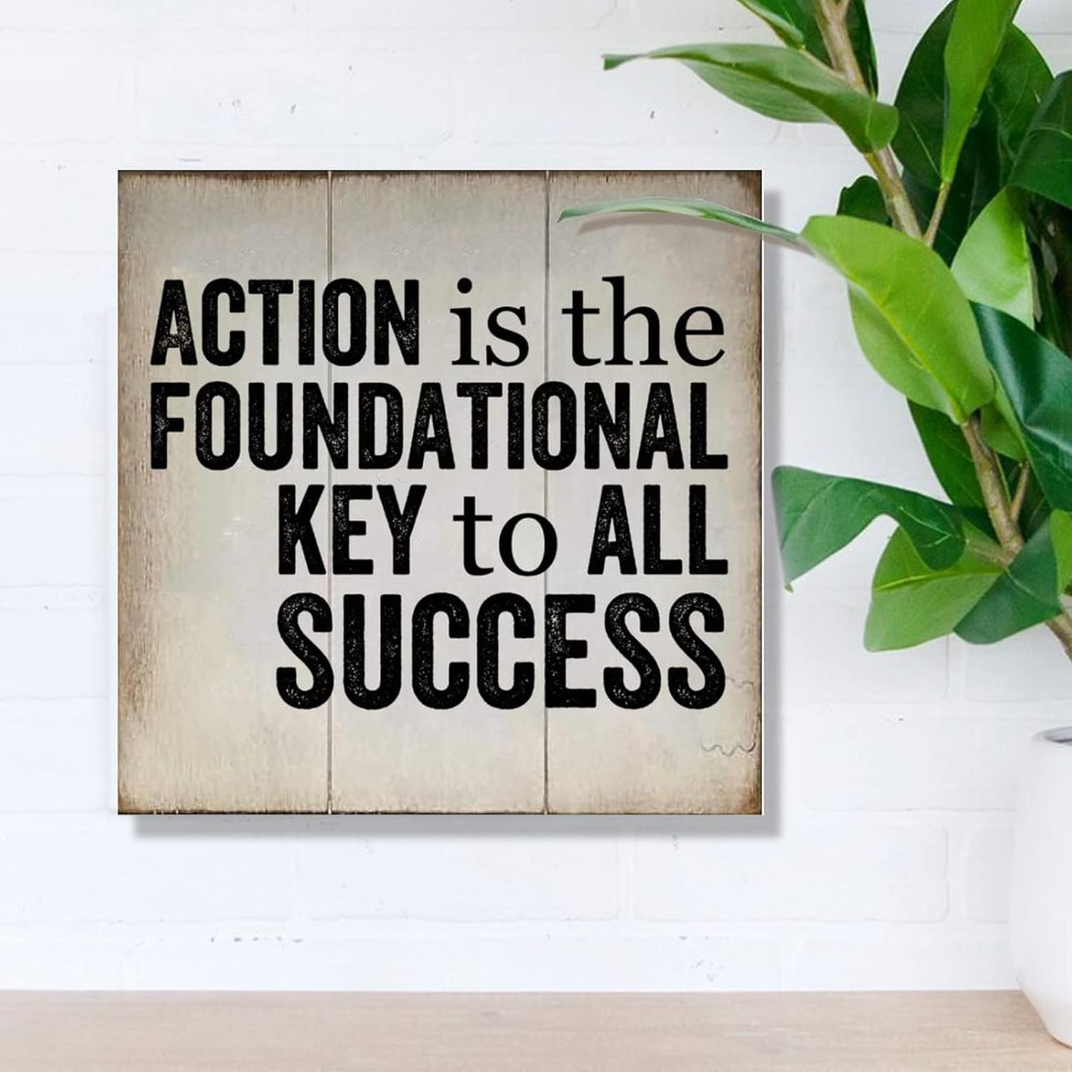 Rustic Sign Wall Decor Action is The Foundational Key to All Success Wood Sign Vintage Farmhouse Wall Hanging Sign Art Decor Plaque with Quotes for Home 16X16In New Home Gift