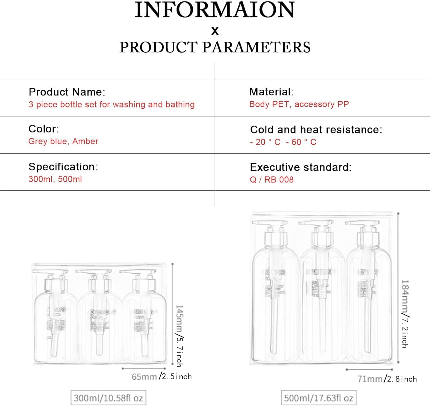 3pcs 10 oz/300ml and 16.9oz/500mlshampoo pump dispenser