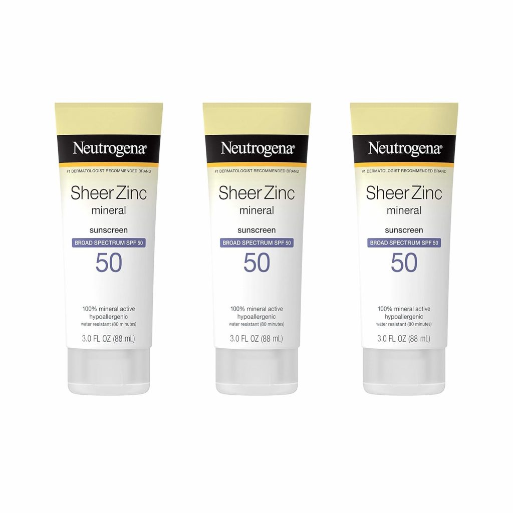 Neutrogena Sheer Zinc Dry-Touch Mineral Sunscreen Lotion provides superior broad spectrum SPF 50 protection against