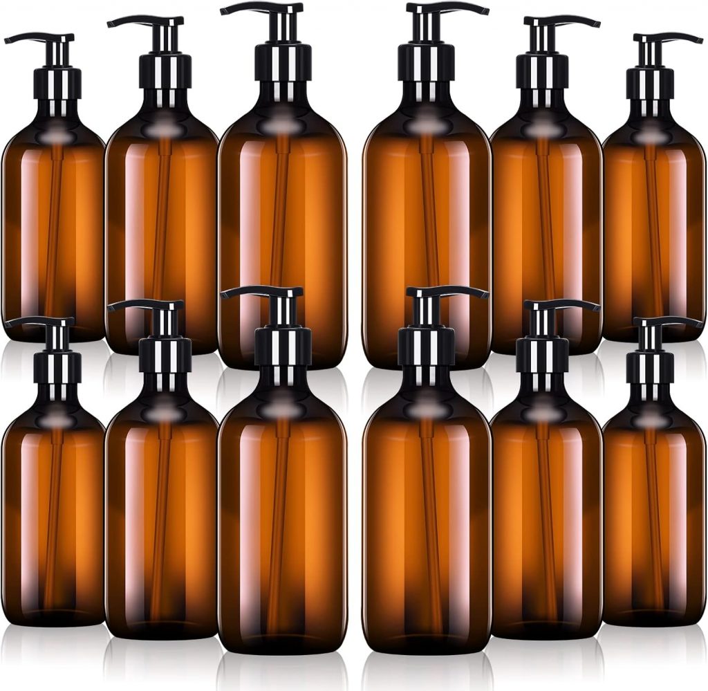Tessco for you 12 Pack Amber Soap Dispenser Empty Plastic Pump Bottles Dispenser Refillable Shampoo for Hand Sanitizer Soap Cosmetic Lotion Body Wash Conditioner Bathroom Kitchen Travel (16.9 Oz)
