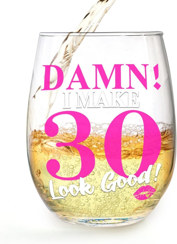 Celebrate the big 3-0 with this unique, humorous wine glass! Featuring the bold phrase, “DAMN!