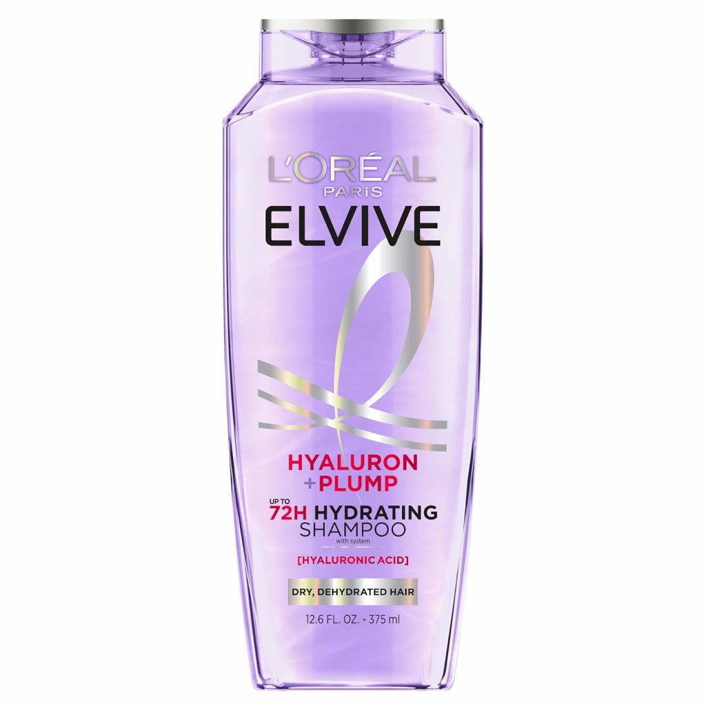 L’Oreal Paris Elvive Hyaluron Plump Hydrating Shampoo for Dehydrated, Dry Hair Infused with Hyaluronic Acid Care Complex, Paraben-Free, 12.6 Fl Oz